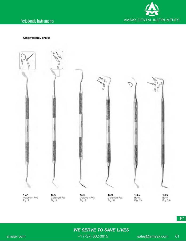 Gingivectomy knives 1521 1522 1523 1524 1525 1526 Goldman-Fox Goldman-Fox Goldman-Fox Goldman-Fox Buck Buck Fig. 7 Fig. 8 Fig. 9 Fig. 11 Fig. 3/4 Fig. 5/6