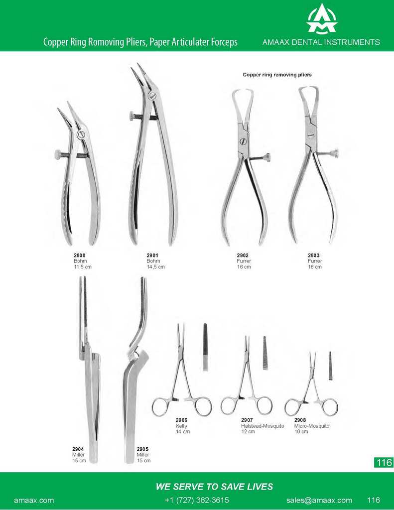 Copper ring removing pliers 2900 2901 2902 2903 Bohm Bohm Furrer Furrer 11,5 cm 14,5 cm 16 cm 16 cm 2906 2907 2908 Kelly 14 cm Halstead-Mosquito 12 cm Micro-Mosquito 10 cm 2904 2905 Miller Miller 15 cm 15 cm
