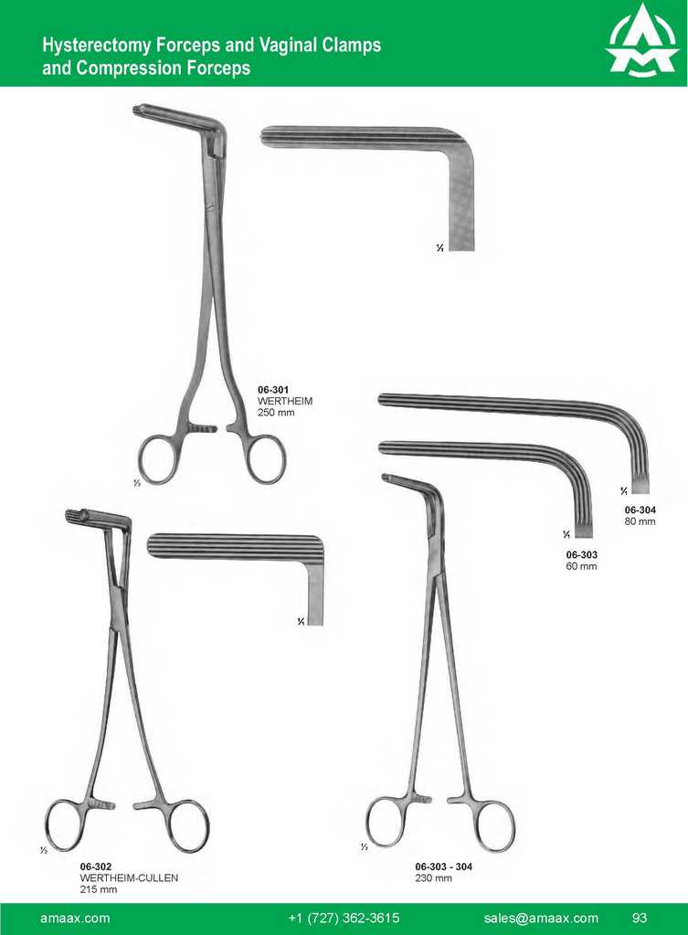 06-296 WERTHEIM Hysterectomy Forceps 255 mm 06-297 WERTHEIM Parametrium Clamp 260 mm 06-298 – 300 DICK 06-298 255 mm 06-299 265 mm 06-300 275 mm INSTRUMENTS R 93